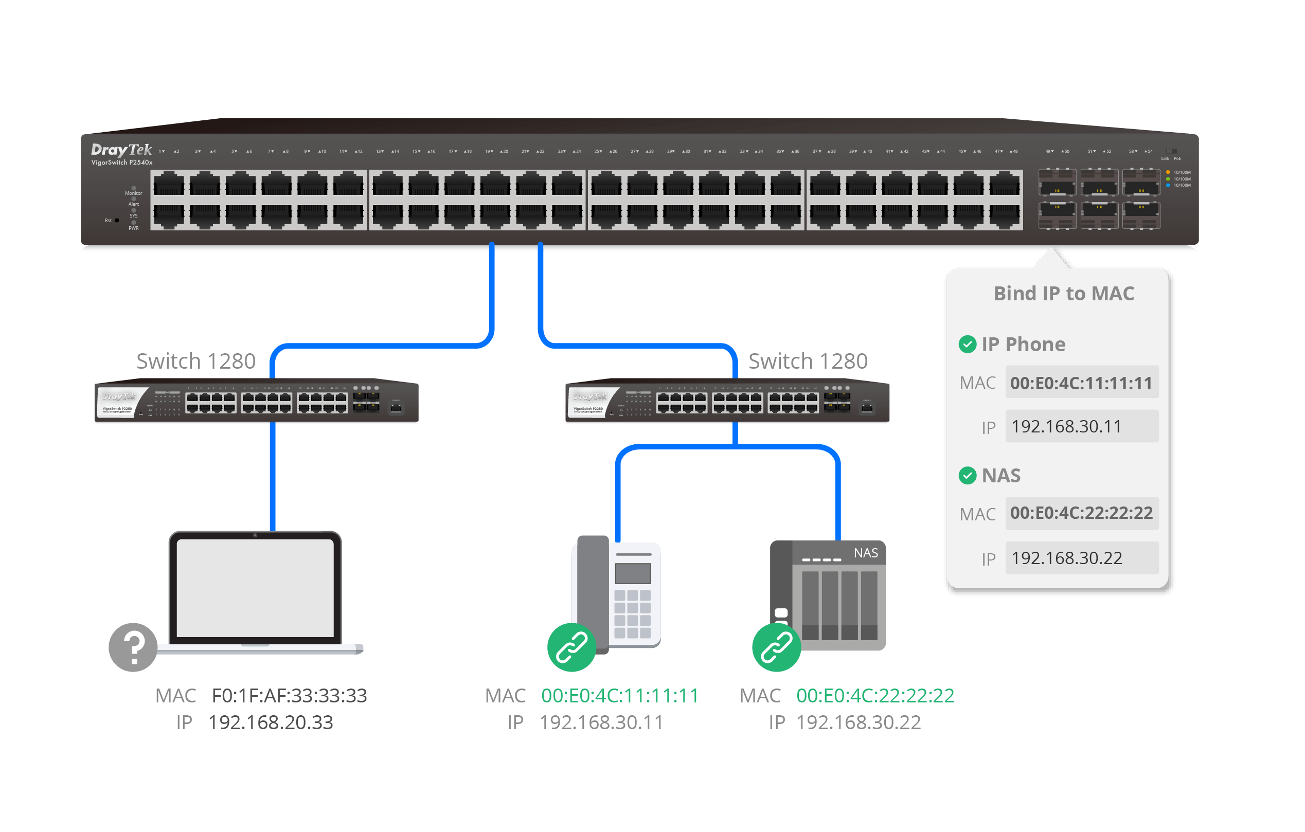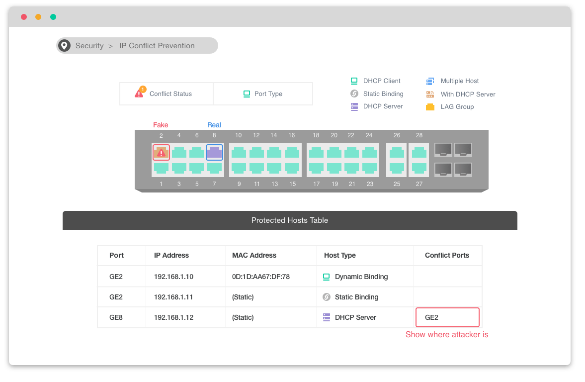 For a more stable network, VigorSwitch can’t only detect but block the misconfigured or malicious IP host.