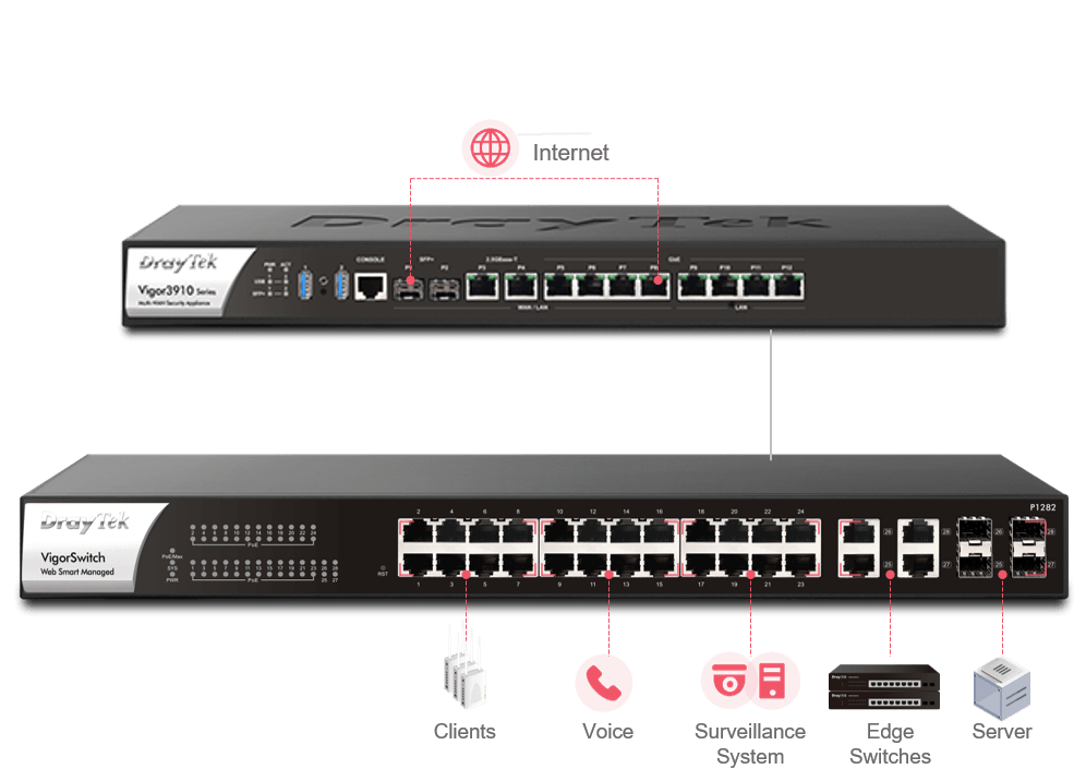 Improve overall network performance by using VigorSwitch P2542xs to route the inter-VLAN traffic directly and offload the router.